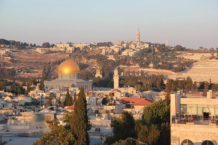 Les disciples sont heureux. Rien ne leur manque. Joie profonde pour eux d’avoir trouvé le Messie. Ils sont les témoins des merveilles que ce dernier accomplit. Les aveugles voient. Les boiteux marchent. Les sourds entendent. Les démons sont chassés. Les morts ressuscitent et le pardon est donné. [1] Que peuvent-ils bien craindre avec un tel maître ? Les voici sans doute comme à l’accoutumée, à Gethsémani, au jardin des olives, en prière avec lui. Depuis Gethsémani, colline située à l’Est de Jérusalem, au-delà de la vallée du Cédron, on contemple toute la ville située sur la colline de Sion. C’est aujourd’hui encore la photo la plus célébre de Jérusalem avec l’esplanade du Temple en perspective sur toute la hauteur de Sion, dominée actuellement par l’or du dôme du Rocher et la mosquée El Aqsa. Quelle splendeur cela devait être quand le temple n’était pas détruit. Les pierres blanches et ocre, brillant au soleil du matin, dégagent la grandeur unique de ce Temple. Certes les disciples sont conscients des oppositions que Jésus suscite, surtout parmi les chefs du peuple. Mais son entrée triomphale à Jérusalem représente un peu la consécration de ce Temple et l’assurance que Dieu est bien là, présent en la personne de Jésus, au milieu de son peuple. Tout leur compagnonnage avec Jésus leur laisse penser à un prochain accomplissement du salut du peuple. Pourquoi pas à une délivrance de l’occupation romaine, puisque tout est si beau et si rassurant, au-delà même de certaines controverses.